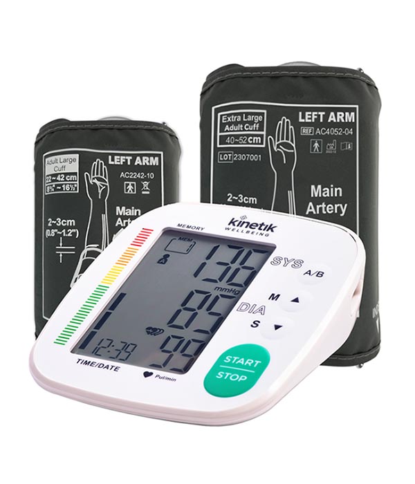 Advanced Blood Pressure Monitor with XL cuff (40-52cm). Large display. Average readings. Irregular Heartbeat detection. Automatic Cuff Wrap detection. Motion detection. On-screen World Health Organisation (WHO) classification indicator making it easy to understand and interpret blood pressure readings. 2user x 90 memory. Clinically validated for use by BIHS and EHS