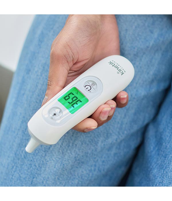 The Kinetik Wellbeing Age-Exact Ear Thermometer provides a quick, safe, and reliable way to measure body temperature. The easy-to-read LCD Display uses a traffic light colour system, instantly indicating whether a temperature is within normal range, elevated or high. Designed for parents and caregivers, this thermometer helps you make informed health decisions with confidence.