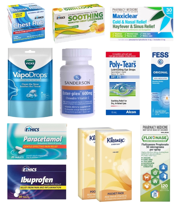 - Complete allergy, sinus, throat, eye, pain & fever relief kit